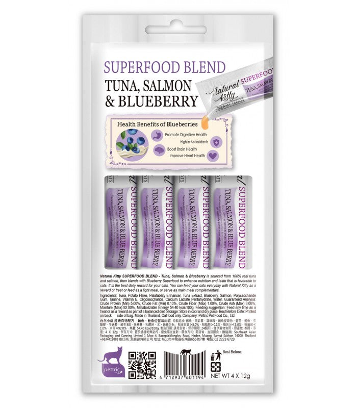 Natural kitty cremosi tonno salmone e mirtilli Per Gatti 4x12 gr